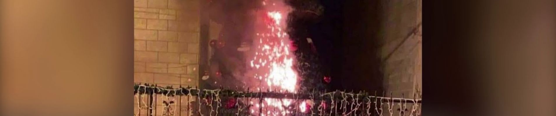"أقدم جناة مجهولون على إضرام النار في شجرتيّ الميلاد في مدينة سخنين بعد أيام من الاحتفال بإضاءَتِهِما بمناسبة عيد الميلاد المجيد، وطالت ألسنة النار شجرة الميلاد بجانب كنيسة السيدة العذراء وأخرى بجانب كنيسة مار يوسف، ما أسفر عن إلحاق الضرر فيهما، وباشرت الشرطة التحقيق في ملابسات الحادث، دون الإبلاغ عن اعتقال أي مشتبه به.